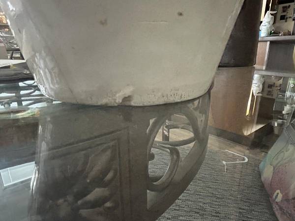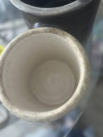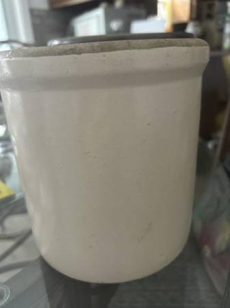 Vintage Pottery Crock in fair condition. Has one spider line and an indent which seems to be a flaw from durning manufacture. See pic.