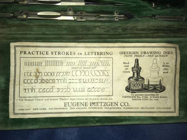 For ink, pencil, has dividers, extension, extra tips, hand lettering pens, $45 or best offer