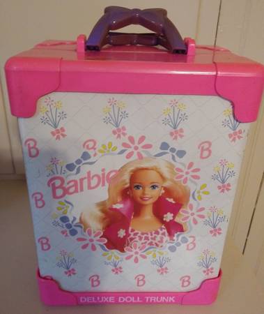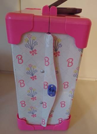 Pink and white floral vintage Barbie storage case. Vintage '90s. Can be used to store the dolls or as a wardrobe. Measures approximately 6 in wide and 12 in high. In a home with no smoking and no...