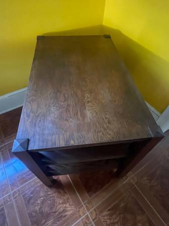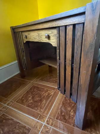 A very solid Antique Desk. Mission/ Arts and Crafts Style. It’s been in my living room for many years. No issues. This is a piece that has been taken care of. It measures 26 x 42 and is 29 1/4 Tall.