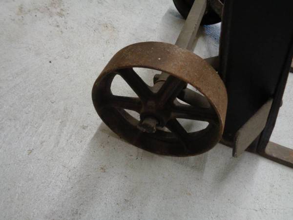 We are selling a vintage American pressed steel hand truck. This was manufactured by The American Pulley Company from Philadelphia. Heavy duty steel wheels. Very good usable condition or use it for a coffee table base or some other creative project. Nice piece of history for only $60.00 o.b.o. Please call show contact info