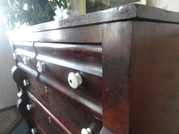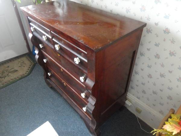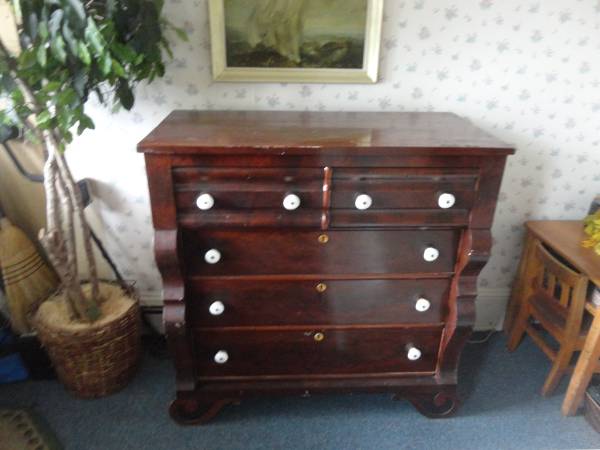 170+ year old 1860s Empire dresser, Solid cherry, 5 drawers, porcelain handles, dovetail construction, brass recessed locks. 20 1/2" deep x 43" wide x 44" tall. $245 Call and leave a message or...