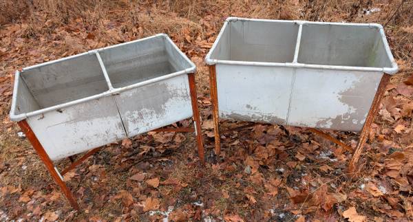 Up for sale are vintage aluminum double wash rinse tubs with lid. Use them with your ringer washer washing machine, us it as a parts washer / soaker, or turn it into a planter. These also make a nice patio beer / soda cooler, you can fill with ice and let it drain out when melted. I am asking $200 each. If the ad is up, the item is still available. Only serious buyers and reasonable offers please. If interested, please respond with a phone number I can reach you at. Be sure to click the "More Ads By This User" box to check out my other ads for more items that I have for sale.
