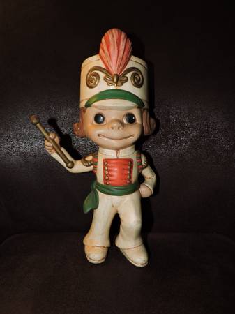 This Drum Major has big brown eyes, dressed in her performance outfit and baton. This was made about 40 years ago and is in perfect condition. Measures about 11" tall.