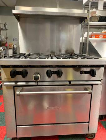 HOBART Sunfire Stove/Oven Converted to Propane gas. One adj rack included for oven. Has full backsplash with upper shelf. Selling AS-IS! Located in NE Pennsylvania - Zip Code 18255 Call/text Gerry...