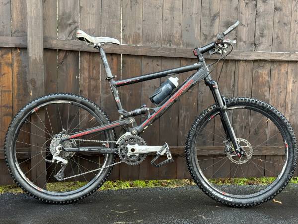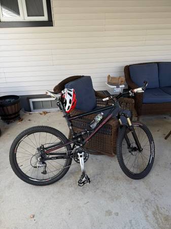 Cheers, here’s a fantastic racing mountain bike. It’s got the best lightweight parts. It’s full suspension with "Juicy 7" hydraulic disc brakes. 21 speed, 26” tires and size medium. It weighs about 22 pounds.