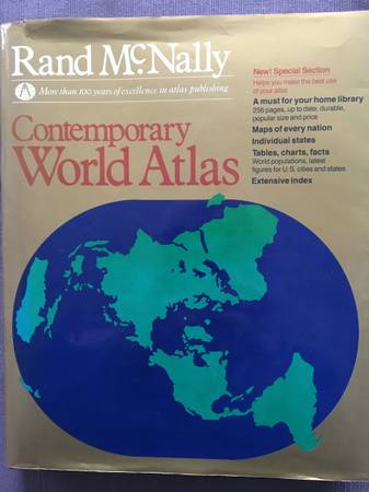 Rand McNally Contemporary World Atlas Book 1986 classic hardcover geographic reference book 224 pages with maps of every nation and state, tables of world/country information and statistics, etc New...