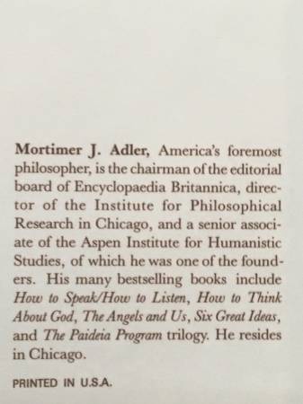 Classic 1985 First edition phiolosophy book by Mortimer J. Adler,