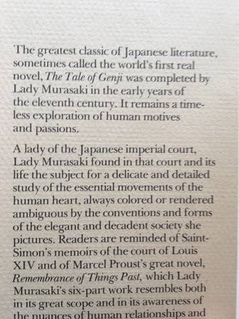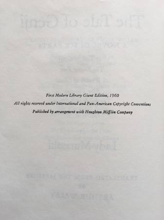 The Tale of Genji, by Lady Murasaki Greatest Japanese Literary Classic Translated by Arthur Waley First Modern Library Grant Edition, 1960 1135 pages New condition $ 25.00