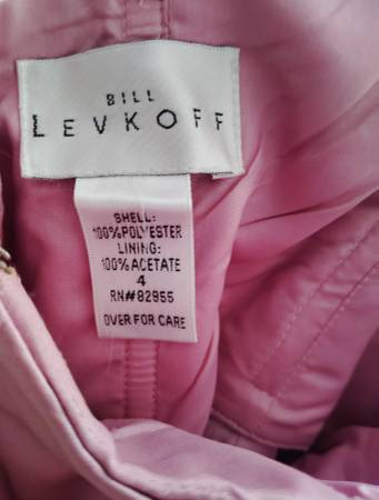 Strapless cocktail dress with off-white sash. The dress is in pink tone. Full length. Size 4 women's.