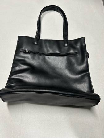 Carryland black purse, hand bag,IPad tote black bag. Faux leather Large zipper pocket on front and back,lots of room inside with another Velcro pocket and small pockets on the side. Used 1x In great...