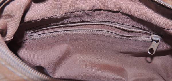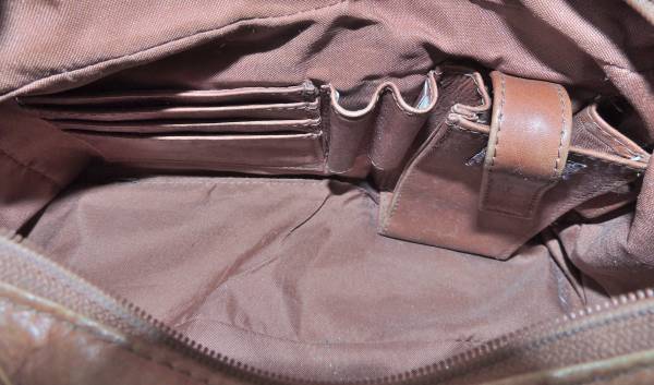 --The other exterior end pocket has a zipper and inside is a separator for two pockets. This also has another flap pocket with a snap.