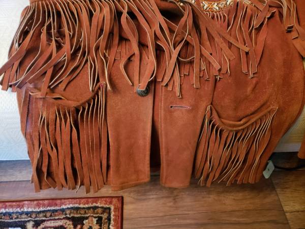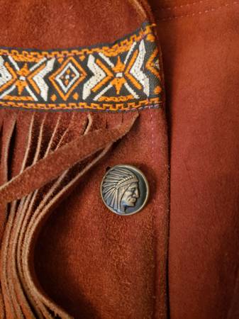 Good used condition. Very heavy jacket and definitely ONE of a kind. Very unique and grabs everyone's attention! Chest size = 19-1/2"