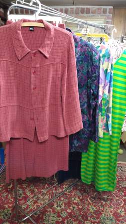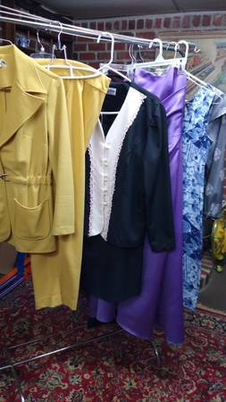 Really nice vintage clothing from the 60's, '70's, '80's. sizes small 6-8-10-12-14-16 available as a whole or individual pieces. Many are large size 16. not all are pictured. this is only a small sample of what is available such as coats, suits, blouses, skirts, jumpers, dresses, sweaters. Furs . Also vintage hats with boxes and purses. Long gloves. Various prices. Look lovely!
