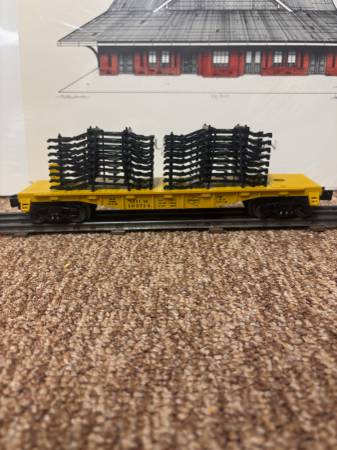 LIONEL MILWAUKEE RD FLATCAR WITH AUTO FRAMES $75
