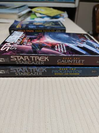 Up for sale are 27 books from the Star Trek Voyager and Stargazer series. Will not separate. $30.00 for all books. See photos for condition. No shipping and local pickup. Will not reply to "Are they...