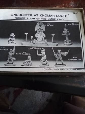 Encounter at Khomar Lolth- Throne room of them Liche King(1987). This set is hand painted and lacquer finished like all my models, then put into a diorema. It maintains my high standards and craftsmanship. Included above are a few examples of others I've done. Custom dioramas are possible. Price would depend on size and content. Inquiries call show contact info