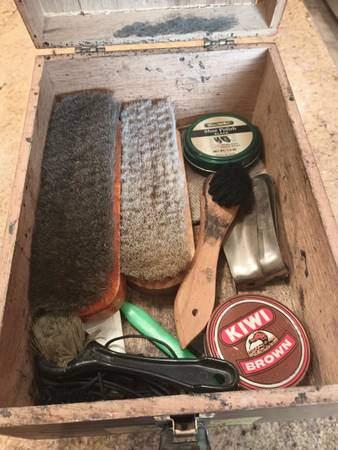 antique shoeshine box with complete contents 11" long x 8 " wide