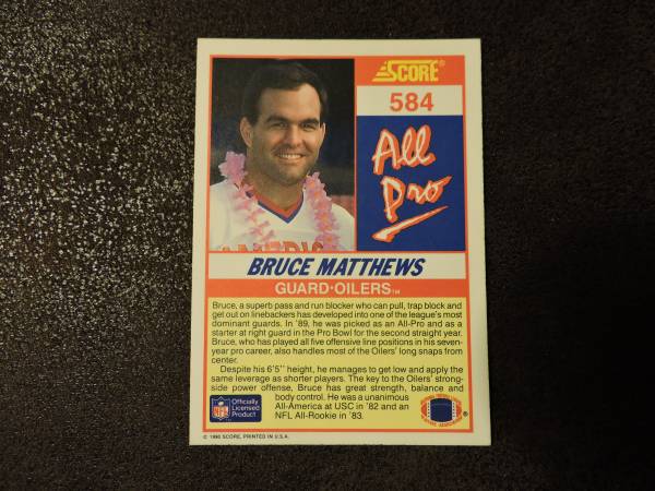 Houston Oilers Bruce Matthews Trading Cards Price Varies for Each -...