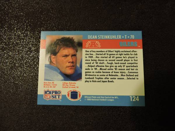 1990 Pro Set Card #124 Dean Steinkuhler (1 Available)