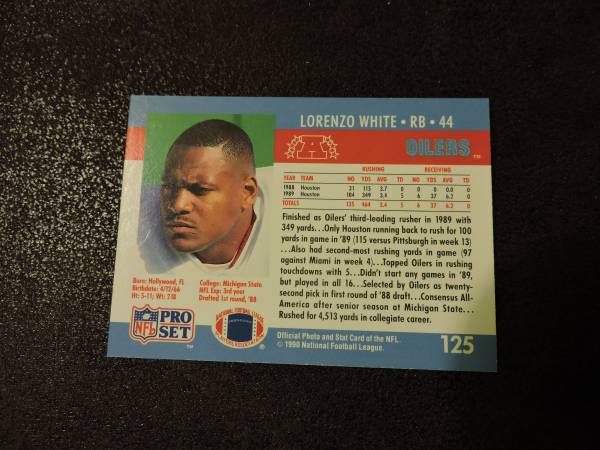 1990 Pro Set Card #125 Lorenzo White (1 Available)