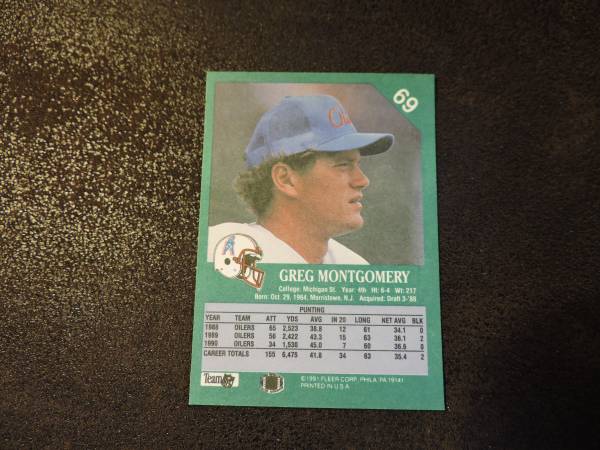 1991 Fleer Card #69 Greg Montgomery (1 Available)