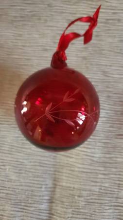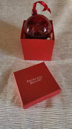 Princess House Handblown Red ornament 2000-2009. Intricate etching flower design. 3" diameter. New, never used. In original box with the original sticker intact. A beautiful addition to your tree or a great gift for a collector.