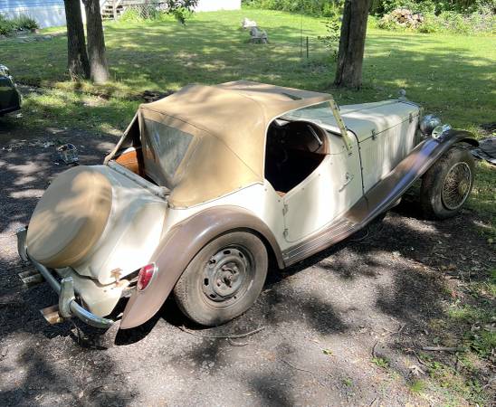 This is a car from my late father's estate. He used to drive it around on occasion especially on the weekends. The vehicle has been sitting covered in a shed for 20 plus years. This is a Fiber fab, fiberglass kit car, circa 1970s, built on a VW chassis. There is a rear mounted 1600cc air cooled VW gasoline engine with manual 4-speed transmission. Last known time the engine was running is approximated to be around the year 2000. The vehicle will need some restoration work. The frame is in good condition, with some surface rust. Front compartment holds the VW gas tank. Fiberglass body shows no signs of cracks. Roof has tears. Interior door pockets are ripped. Chrome parts need restoration and need to be re-chromed. Driver side outside rear mirror is cracked. Tires (15 inch rims) hold air but will need to be replaced. Side curtains for top are present. Miscellaneous VW parts included. Odometer reads 991. Are you the person to restore this classic MG to its full glory and get it on the road? The vehicle has a clear reconstructed title and can be transferred to the new owner. Please respond with contact info and telephone number if interested, I will NOT reply to responses without this info. Thank you!!!