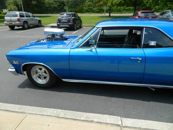 1966 Chevrolet Chevelle SS Pro Street - 427 BIG BLOCK -- --WITH 671 BLOWER and DUAL QUARDS - six 31-599-1004 -- --- ONE OF THE BEST YOU WILL FIND -- -- COMPLETE FRAME OFF RESTORATION - - TUBED REAR END --- --- COMPLETE ROLL BAR -- BEAUTIFUL BLUE HIGH END PAINT JOB -- BEAUTIFUL SUPER STRAIGHT BODY ---WON MANY TROPHIES FOR BEST OF SHOW and FIRST PLACE AWARDS - six 31-599-1004 -- THIS CAR COST