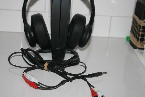 Insignia™ - RF Wireless Over-the-Ear Headphones Model NS-HAWHP2. Docking station, power cord and the 3.5mm to RCA cable. Black 5.8 Ghz Digital Wireless Over The Ear Headphones.