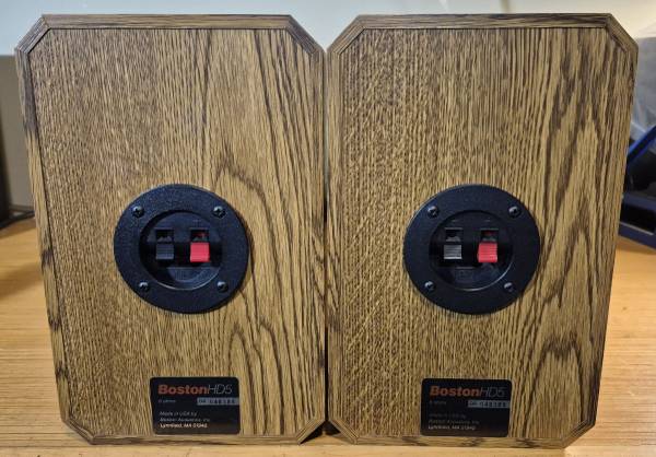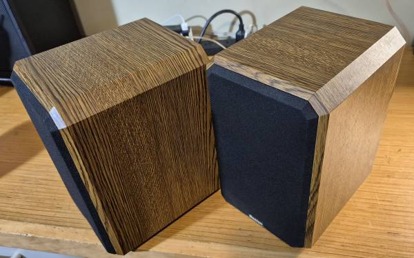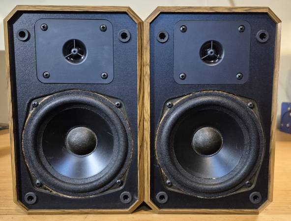 Surprisingly big sound from a small bookshelf speakers. New surrounds. In overall excellent condition.