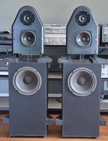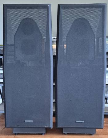 Dalquist DQ-12 speakers. New surrounds and the tweeters were serviced with new ferro fluid. Grills have some holes in the fabric, but overall in good condition.