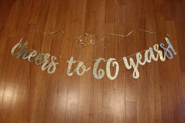 (1) "Cheers to 60 Years" - Premium Gold Glitter Cardstock pre-strung Banner