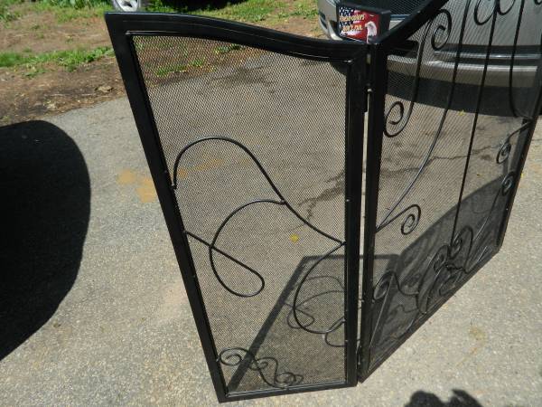 black fireplace screen made out of heavy metal (steel) 51 1/2" wide fully opened x 33" tall used condition $35.00 if interested call 484nine four eight 0271 ask for Barry prefers calls thanks