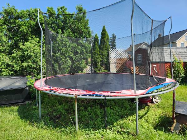 If you see it its available I will not respond back if asked 12 foot trampoline with safety netting less than 10 years old for parts Already taken apart ready to go trampoline mat no issues lots of...