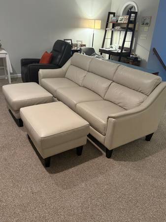 Gorgeous new soft and comfortable, yet durable, light beige leather ottomans. Valued at $500. Asking $300 each.