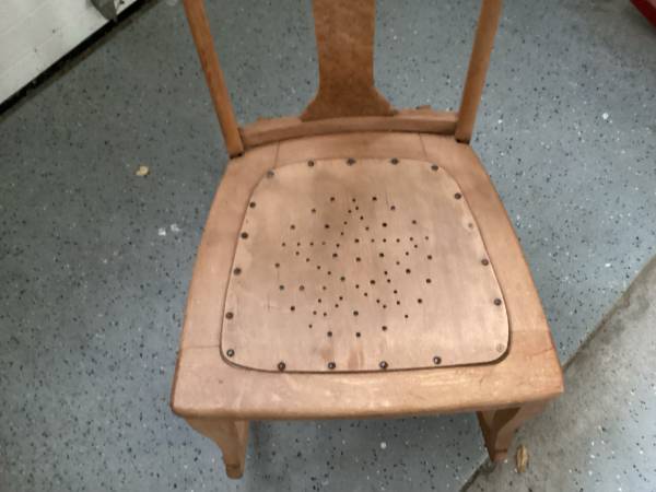 Kid size Wooden Rocker - Solid wood with an original wood seat that is tacked onto the frame. Sturdy, clean, smoke free home. Approximate dimensions: Height: 33” Width: 17” Seat Height: 15” Located...