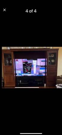 Sofa 90” long x 38 D, Wing chair, Hooker entertainment center plus TV Stand.