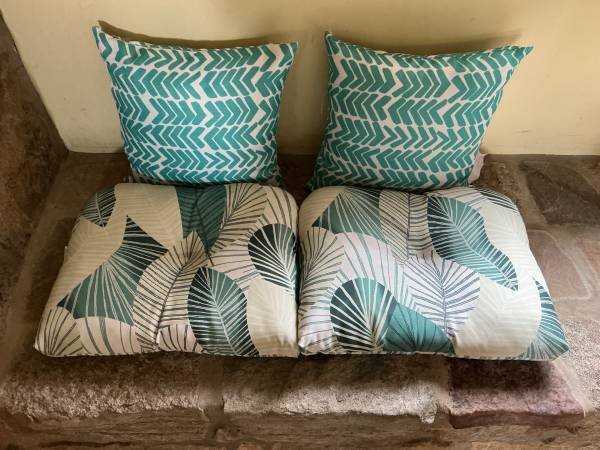 (4) chair cushions, (4) pillows, $45.00 for All, live close by rt78, phone call or your phone# in email reply, AD deleted when sold.