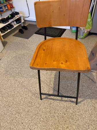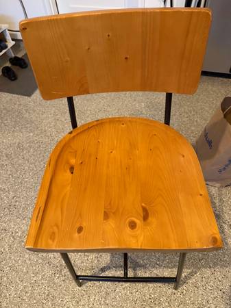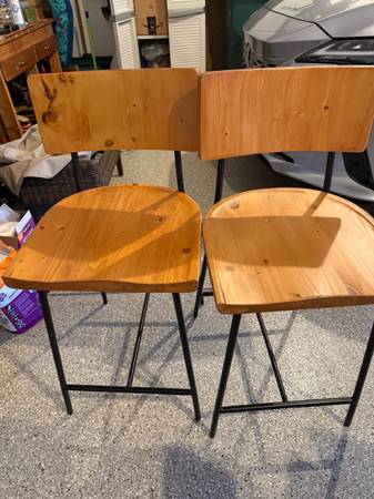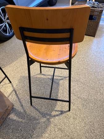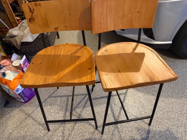 Three wooden stool in like new condition purchased from Grandin Road for 399 each. They are 25" from the floor to the seat and 37" from the floor to the top of the back. I purchased them before we moved and the color wood does not go well with the wood on the house, they are only one year okd