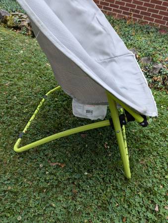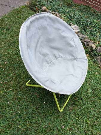 Nice clean lime green metal frame with gray mesh seat moon chair. Great for college, teen room,kid room etc.