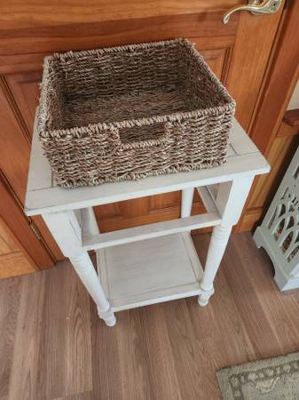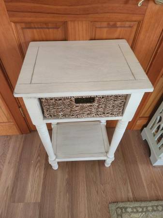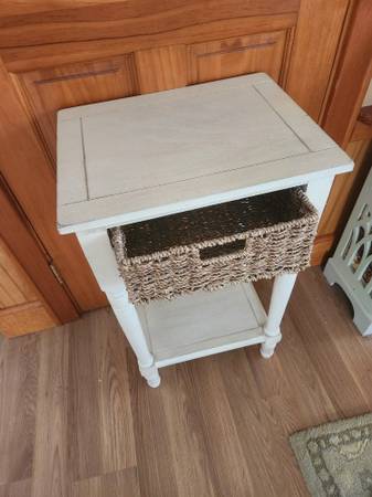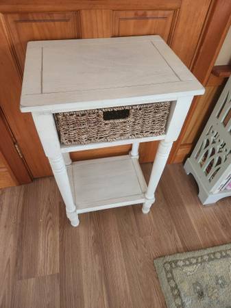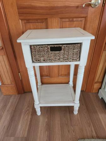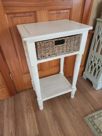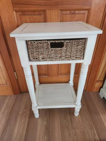 Beachy end table, shelf & basket drawer bathroom/bedside nightstand...