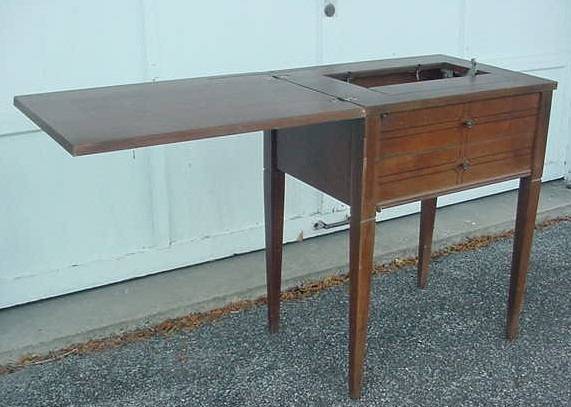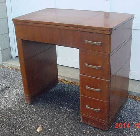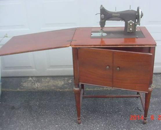 Up for sale are four antique sewing machine cabinets from the 1930's-1960's Mid-Century era. All of the cabinets are strong and made of solid wood. I believe the cabinets held Singer machines (possibly models 66, 99, and 201). One of them could have held a Kenmore, I am not sure though, they might fit Necchi machines too. The last cabinet contains a vintage heavy duty "White" brand sewing machine. Feel free to make an offer on one cabinet or all. Only serious buyers and reasonable offers please. If interested, please respond with a phone number I can reach you at. Be sure to click the link at the top right of the picture to check out my other ads for more items that I have for sale.