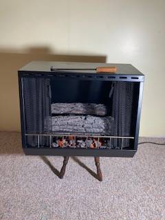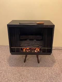 Holds two 13 oz., Real Flame cans, plug for burning ash effect. Dim's-24 in. across, 12 in. front to back, 19 in. height. Lava rocks, poker, some gel fuel, manual included. Stand not included......