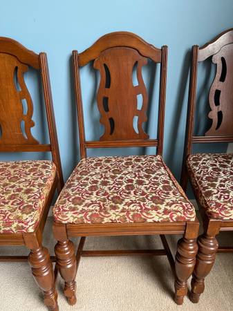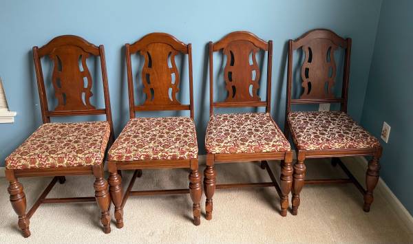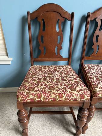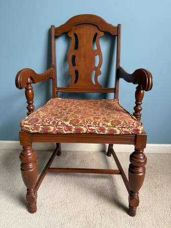 Set of 5 Dining Room Chairs includes: 1 Arm Chair - 36" h; 22" w; 18" d 4 Side Chairs - 36" h; 16 1/2" w; 16 1/2" d