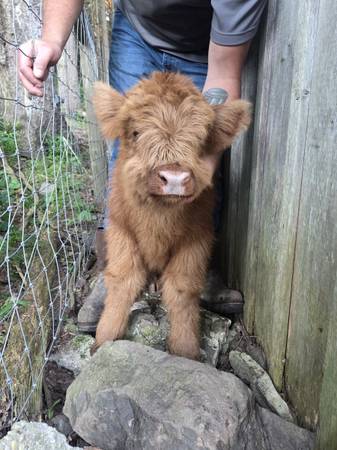 2 female baby Highland Cows now ready for their new families. Both born on our farm in June. Red baby is 100% Highland and just starting with her own horn buds. Black baby is 50% Highland (dad) and 50% Dexter (mom is a White Dexter) naturally polled, and just staring to come into her shaggy coat! Asking $5000 for red baby and $4000 for black baby. Both parents are on the farm, friendly and calm with great dispositions. Call or Text Jeff for more information show contact info