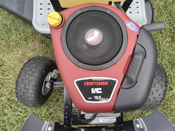 Briggs and Stratton 15.5hp ohv engine 6 speed transmission 38" cutting deck with brand new blades and belt just installed Garage kept Freshly serviced Runs and cuts perfectly Everything works as it...