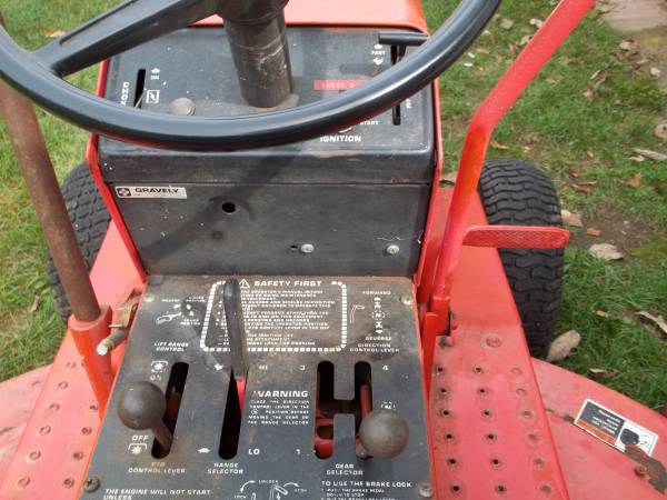 i have no idea about this tractor BUT driving it was a blast!! I kind of want to keep it but my yard is just 25x75ft, this was part of a bulk garage item purchased from estate sale, i have all documents plus there is a box of spare parts i think there's a carb, grass deflector something that looks like a gas pump with arm that goes on a cam i believe, past owner purchased new and was only use to cut his 2 acre property there is no other attachments, the deck works but there are some rust spots see picture.