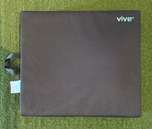 The VIVE Wheelchair Cushion is a black nylon seat cushion designed for wheelchairs, office chairs, car, providing pressure relief for added comfort during long periods of sitting