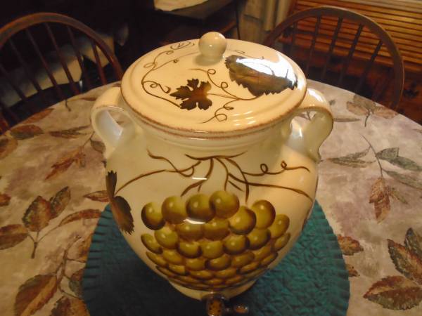 Ceramic drink dispenser. Holds 3 gallons of liquid. 15" Tall. From the now discontinued Villa Grande Collection. Like new condition - never used. Great for the upcoming holidays! Call or Text....